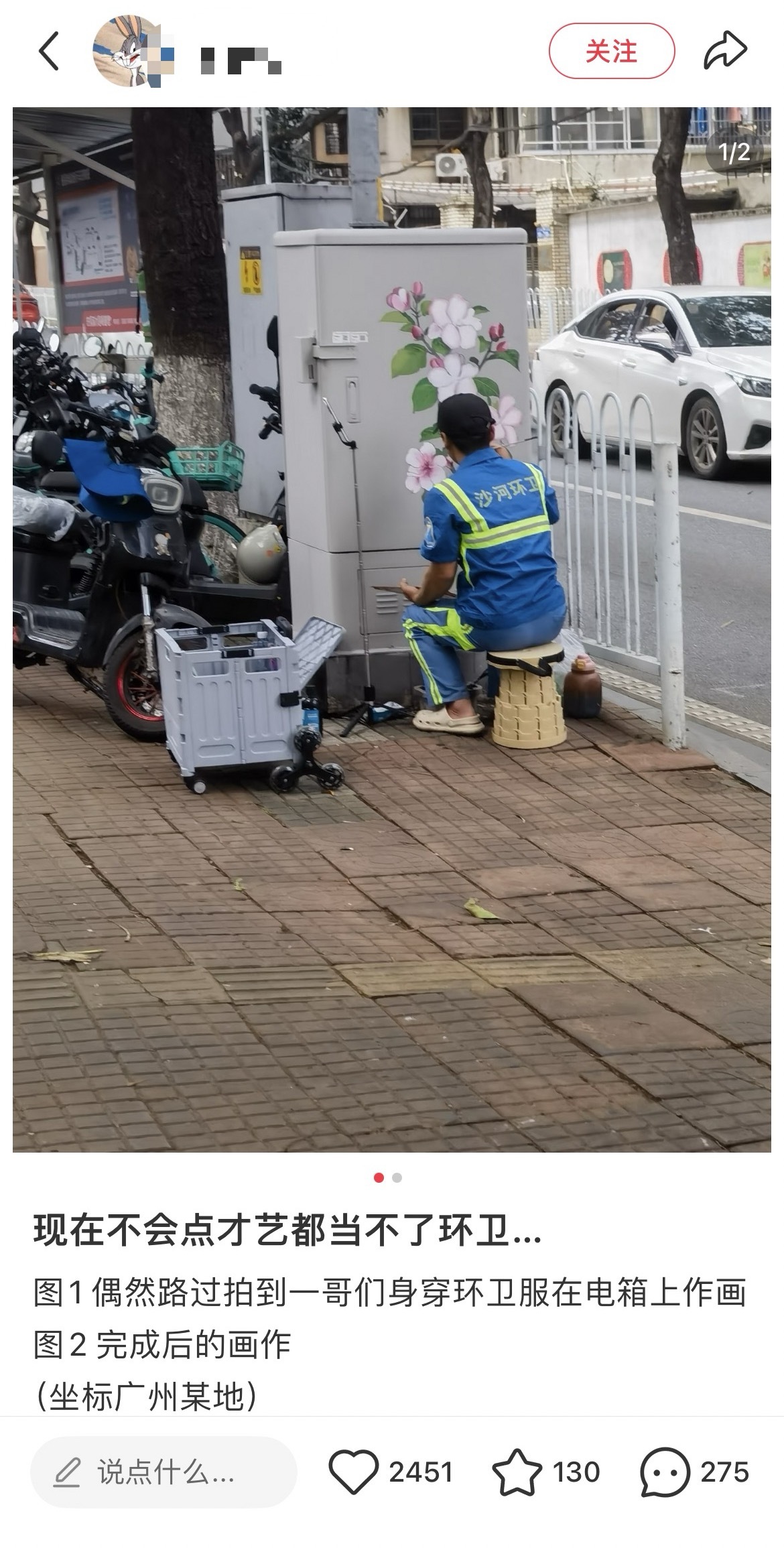 也有东谈主说:“这是环卫公司成心请来画画的。”
