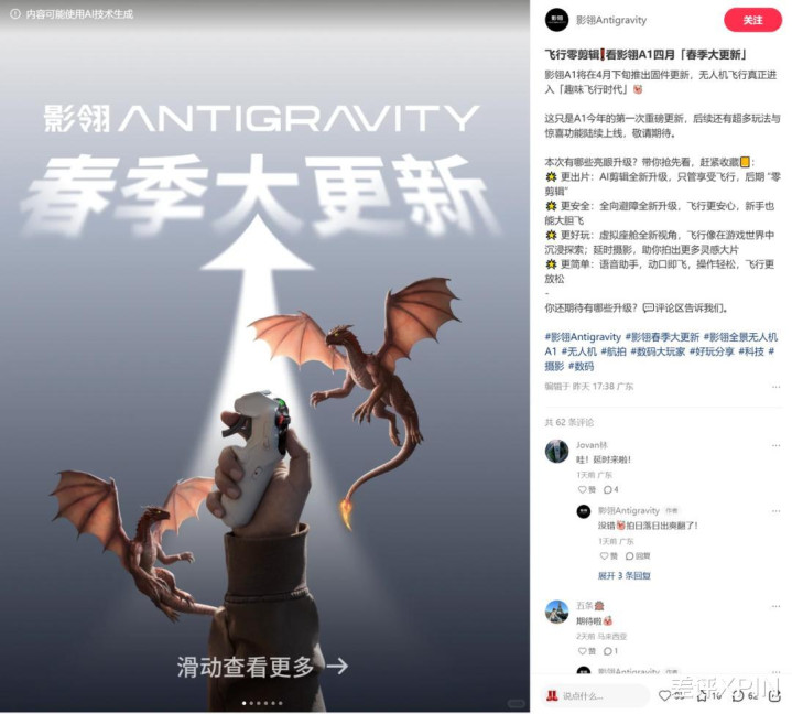 你把它们放在一齐看,会发现方针其实都相似:络续压低门槛。影翎 A1 想解决的,不是“若何把无东说念主机络续作念得更像一个专科拍摄器用”,而是“若何作念一台更容易让普通东说念主享受遨游、顺遂又能出片的全景无东说念主机”。这其实亦然影石在全景相机上验证过的一套关节论。