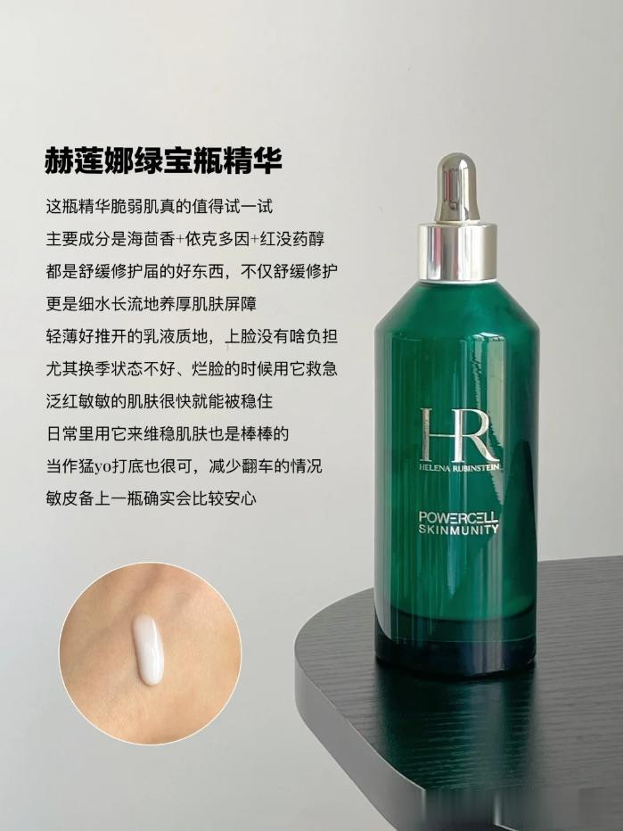 它是处罚泛红明锐的一把好手,敏皮一年四季常备的精华之一,添加海茴香索取物修护维稳看得见,我属于那种冬天一吹风脸就泛红的易敏肤质,脸又干又红又痒,涂上绿宝瓶咔咔退红,没它不可。